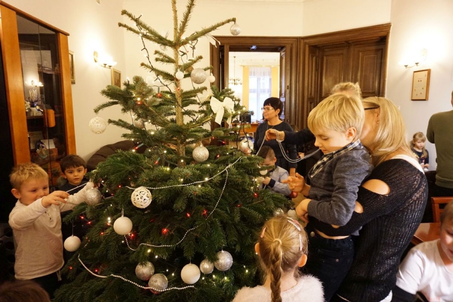 "Dla dzieci choinka to radość, frajda z zawieszania bombek, łańcuchów, ozdób choć przyznaję, że i ja świetnie się bawiłem. Ale to dlatego, że miałem takich pomocników" - stwierdził wiceprezydent Trela.