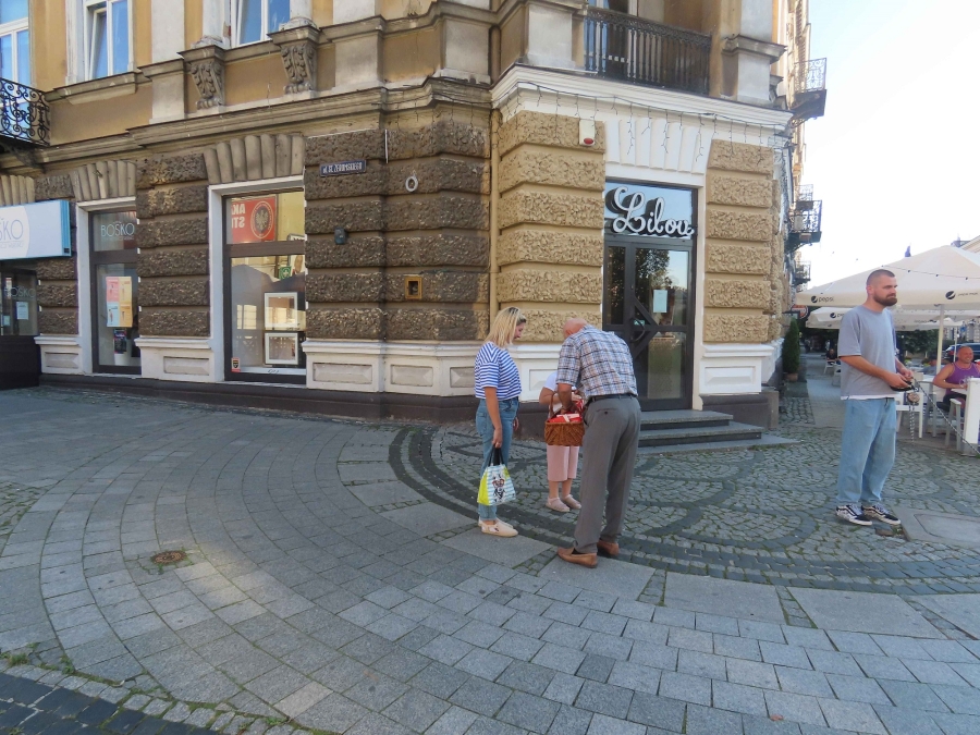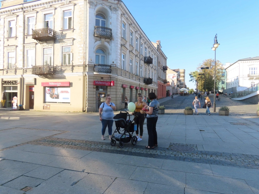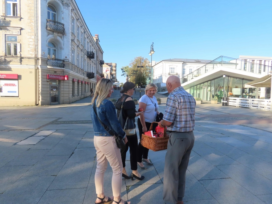 Rozdawaliśmy  jabłka  na  deptaku  przy  ulicy  Żeromskiego  w  Radomiu.  Przechodnie  chętnie  się  nimi  częstowali. Chwalili  ich  smak i  wygląd.