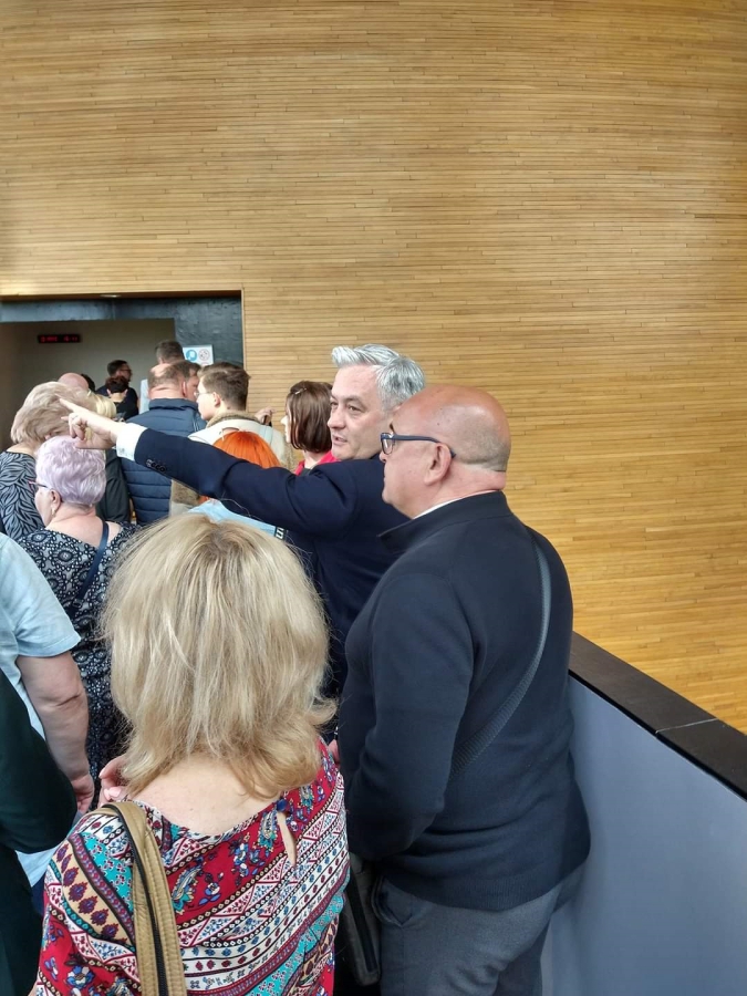 Odbyliśmy też bardzo oczekiwane przez nas , ciekawe spotkanie z europosłem do parlamentu Europejskiego- Robertem Biedroniem, który opowiadał nam o swojej pracy oraz o stanowieniu prawa w Parlamencie Europejskim. Następnie mieliśmy okazję do wspólnego zdjęcia całej grupy z Robertem, po czym Robert osobiście zaprowadził nas na galerię dla gości, gdzie wspólnie z nim wysłuchaliśmy dyskusji na temat tranzytu zboża z Ukrainy oraz o korupcji w Europie. Akurat przemawiał w sprawie zboża polski Komisarz Janusz Wojciechowski.